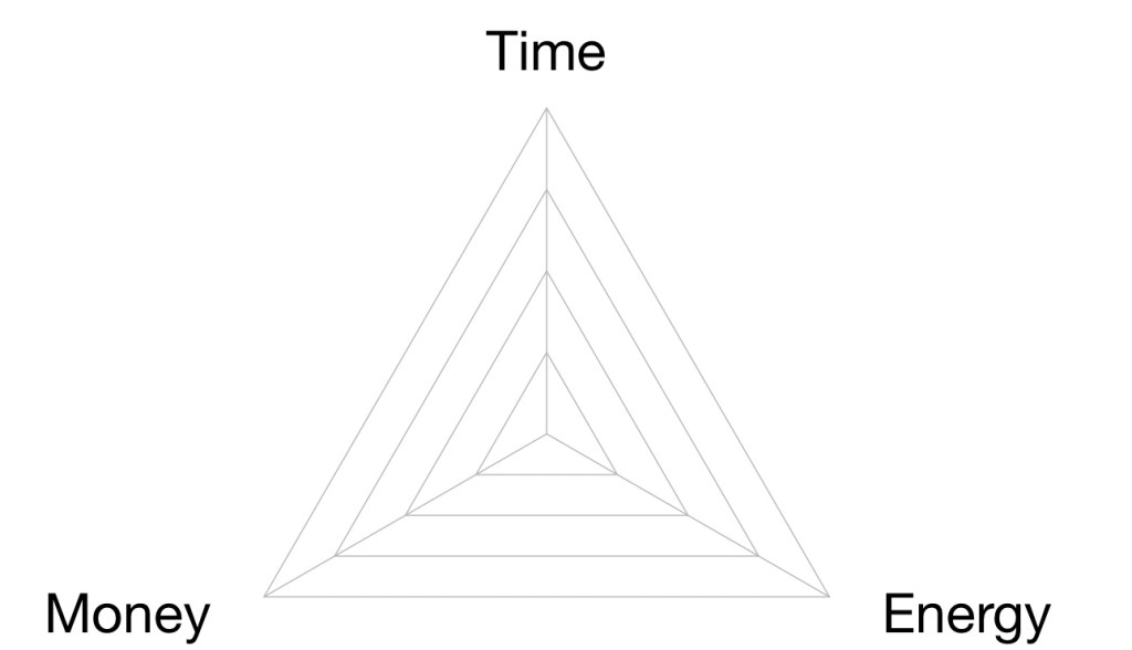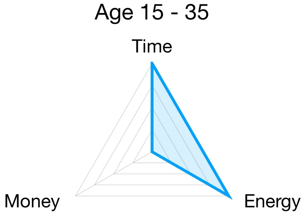 When we are young adults in this world, the triangle is skewed towards Time and Energy.