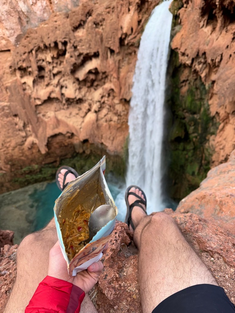 Back at camp, I took maximum advantage of the view of Mooney Falls while I ate my freeze dried meals. Having walked over 15 miles in one day, I treated myself to two of the packets with the falls flowing in the background.