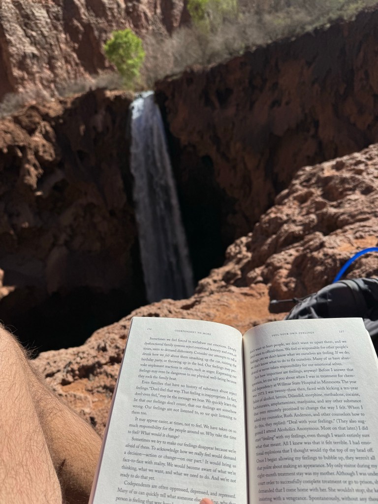 I’ve been reading Codependent No More by Melody Beattie, a thought provoking book that has been cutting to the core for me. I’ve been distraught since the messy break up with Lam; have come to realize that I am a deeply codependent individual. I’ve done a lot of work on moving past various addictions, but still haven’t been able to integrate the codependent parts of my nature into the bigger picture. I lacked awareness; reading this book has opened my eyes into the behaviors and thought processes underlying a widely prevalent condition amongst my family, friends, and choice in romantic partners. It seemed like a natural accompaniment to my first solo backpacking trip and thus far has not disappointed.